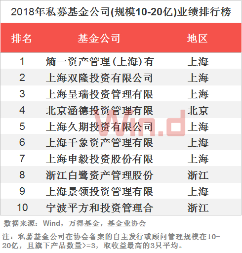 管理规模10-20亿的私募中,熵一资产位居第一,双隆投资、呈瑞投资分列第二、第三位,三家平均回报达31%。从地区分布来看,主要集中在北上。
