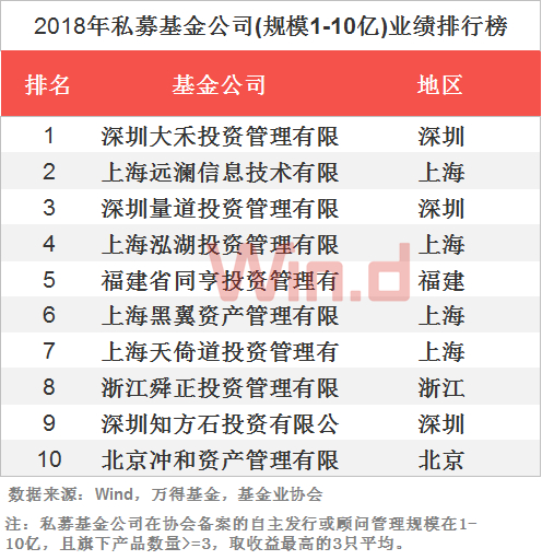 管理规模1-10亿的私募中,大禾投资位居第一,远澜信息、量道投资分列第二、第三位,三家平均回报达58%。从地区分布来看,主要集中在上海、深圳。