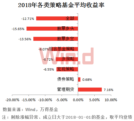 从各类策略私募基金2018年全年业绩表现看,管理期货策略基金平均收益率最高,达7.16%,其次是债券策略基金0.68%。