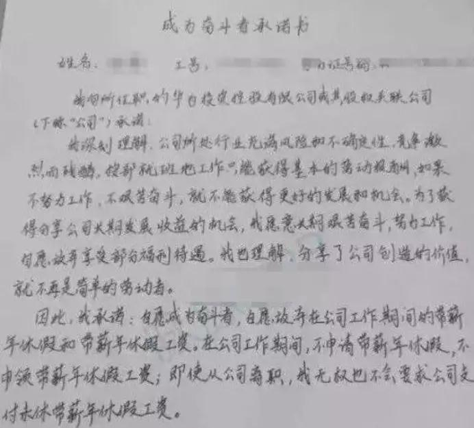 因为危机感,华为内部存在着奋斗者承诺书这样的东西。内容写着