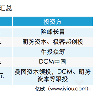 注:文章中所涉投融资额度来源于企业或相关机构或公开资料,亿欧已经尽量核实,不对融资额度做品牌背书;欢迎各方监督核实,如融资额度不实,欢迎向亿欧举报。