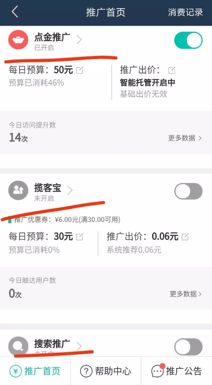 为了提高外卖平台页面的客流量,元昇还需要在美团平台做一个“点金推广”,这相当于一个“点击量推广”,每一个点击量就扣除1.5-2.5元,仅此一项他每天至少要花掉50元;此外平台还推出“揽客宝”,即面对顾客的“满30元减6元的优惠券”,这一项他一天也要消耗30元;此外还有“搜索推广”,即针对顾客在搜索餐品时推荐店铺的费用,每天的预算为20元。整个下来,他每天在一家外卖平台的推广费就需要100元。