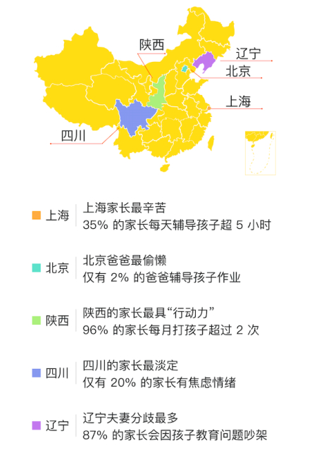 报告显示,我国超过7成的小学生家长每天下班之后辅导孩子时间超2小时,其中上海地区有35%的家长每天辅导孩子时间在5小时以上,被评为全国最勤奋家长。