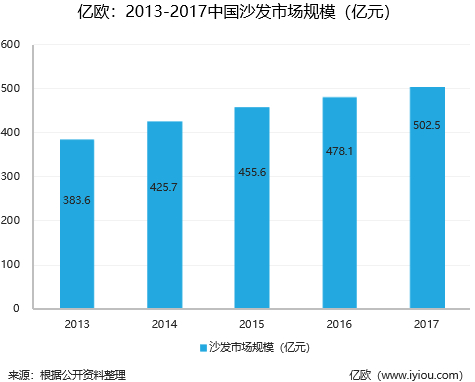 近几年来,沙发行业保持着良好的增长势头,市场规模逐年稳步提升,在2017年突破500亿人民币。