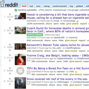 Reddit首页截图,可见其技术、娱乐、社会新闻等内容丰富且用户活跃