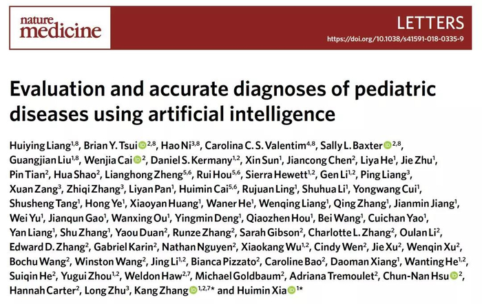 昨日,Nature子刊Medicine发布了一篇重磅文章——《使用人工智能评估和准确诊断儿科疾病》,在业界引发了不小的反响。