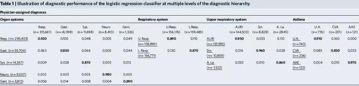 不常见的疾病的确诊率也很高:急性哮喘(97%)、细菌性脑膜炎和水痘(93%)以及单核细胞增多症(90%)。