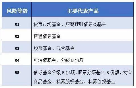 如果不是合格投资者,切忌不要相信业务人员帮助你伪造材料进行购买,除了认识自己的投资资格外,还需要了解市场上私募基金产品的风险等级。目前私募基金产品可分为五个风险等级,分别是R1低风险、R2中低风险、R3中风险、R4中高风险、R5高风险。每个风险等级所代表的产品类型不同,R1代表的是货币市场基金或短期理财债券类基金,R2代表的是普通债券基金,R3的主要产品则是股票基金和混合基金,R4类产品主要是可转债基金、分级B份额,而R5类风险相对较高,代表产品是债券基金分级B份额、股票分级基金B份额、大宗商品基金、私募股权基金、私募创投基金。