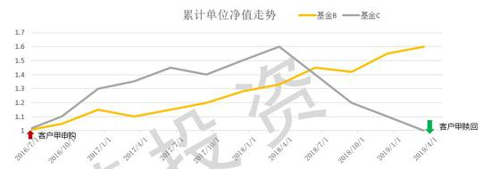 客户甲于2016年7月1日申购基金B共100万元并于2019年3月31日全部赎回;客户甲于2016年7月1日申购基金C共100万元并于2019年3月31日全部赎回。
