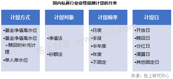 对于私募行业的业绩报酬计提方式,国内并没有统一的标准,海外对冲基金的计提形式也有多种。