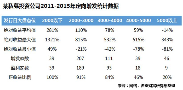 即大盘涨跌对收益产生影响,选择大盘合适的点位、在估值合适的时机参与定增,是获得定增盈利的重要外部因素。从历史数据来看,定增项目获得收益的概率是和投资时的大盘点位密切相关。
