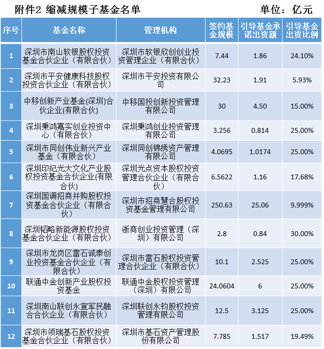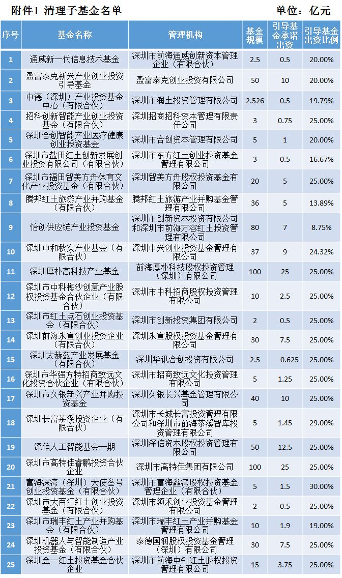 这次是深圳市政府引导基金首次公示清理子基金名单,在全国也尚属首例。