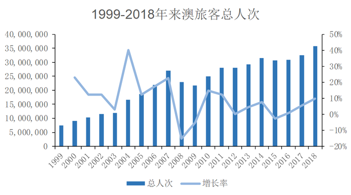 除了路氹本地人口增加外,澳门回归后的旅客量增加是澳门旅游业的重大利好,也是路氹能够短时间内快速发展的主要驱动力。
