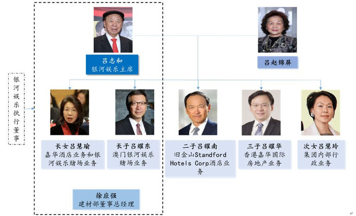 相比之下,银河娱乐的家庭结构与股权关系则显得简单清晰。