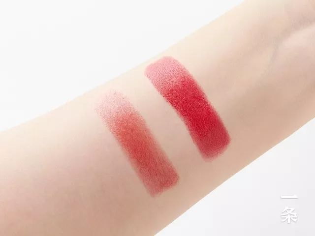 涂在嘴巴上,金管的质地比较显色大气,碎花就更加温柔。