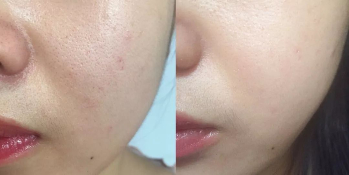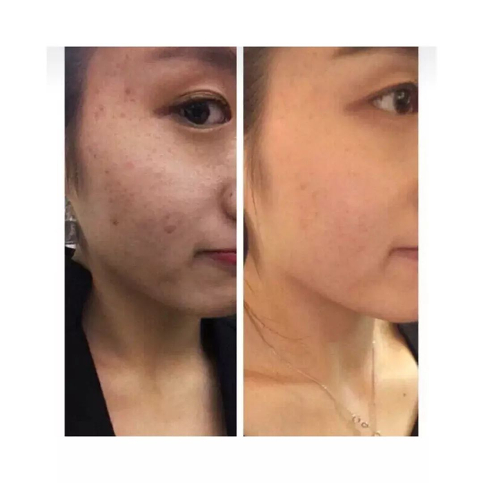 这位网友的效果更加明显,原本她满脸的痘痘、痘坑,用神仙水不到两个月,痘痘就好得差不多了,粗糙的痘坑也几乎都变平整了。