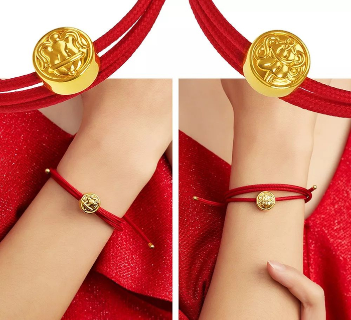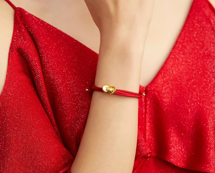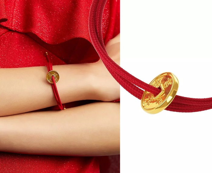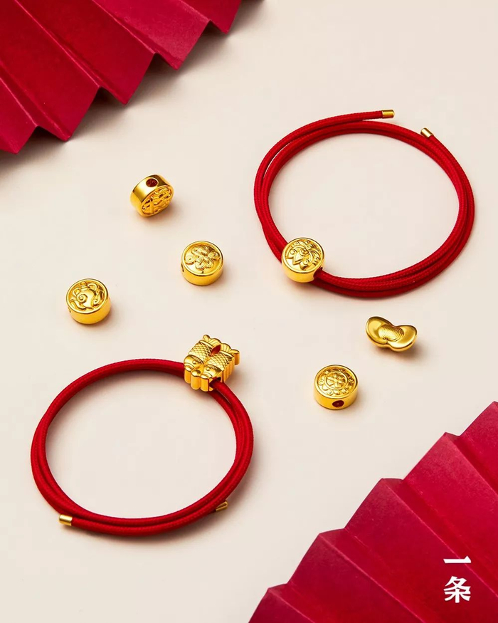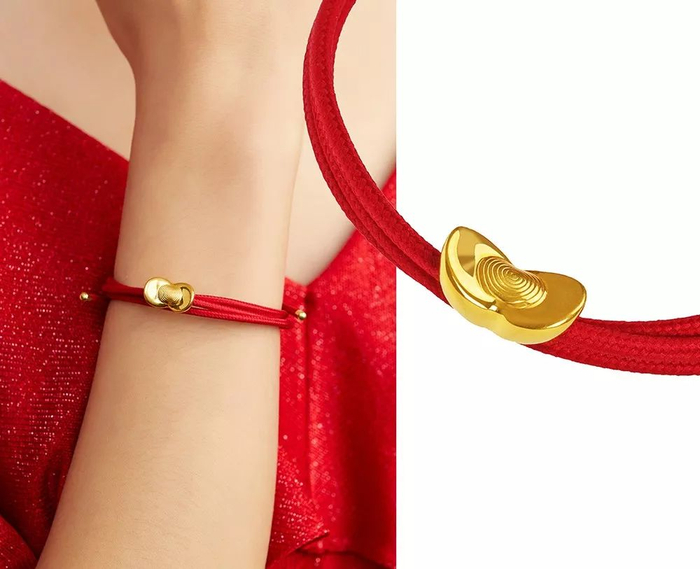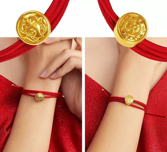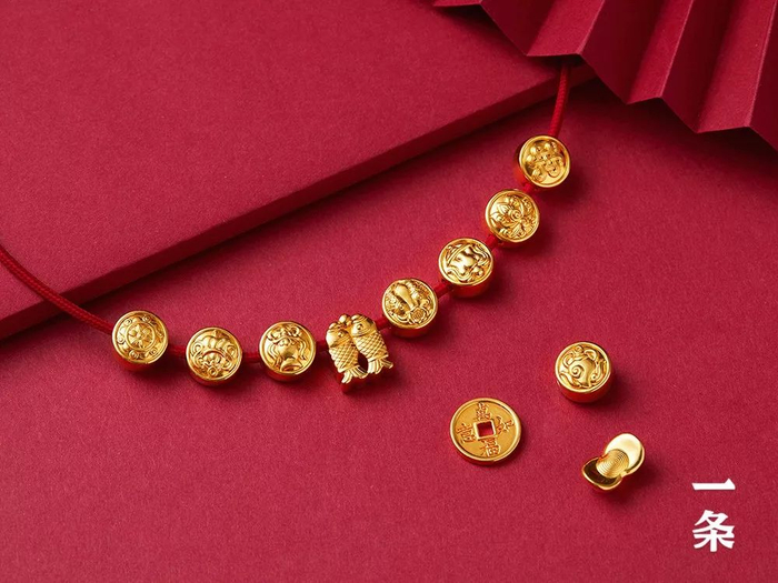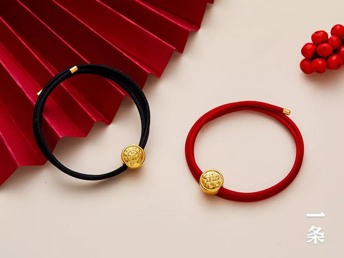小坠子粒粒金光闪闪,配上红绳分外贵气。