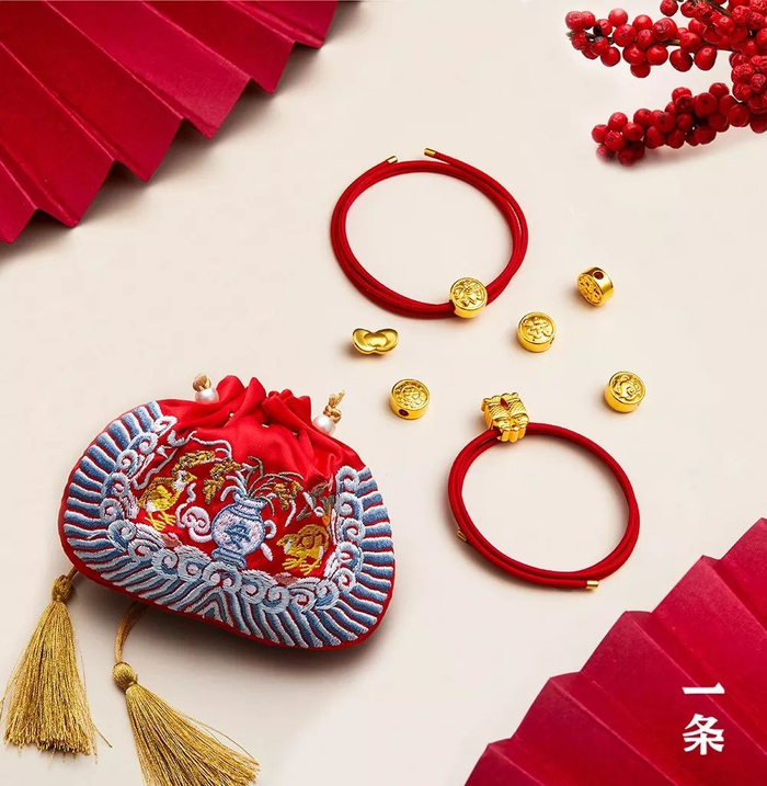 每一款手绳,都装在这个荷包里,荷包原样复刻了故宫博物院馆藏文物《馈岁刺绣荷包》,打开它就好像收到了一份穿越百年的礼物。