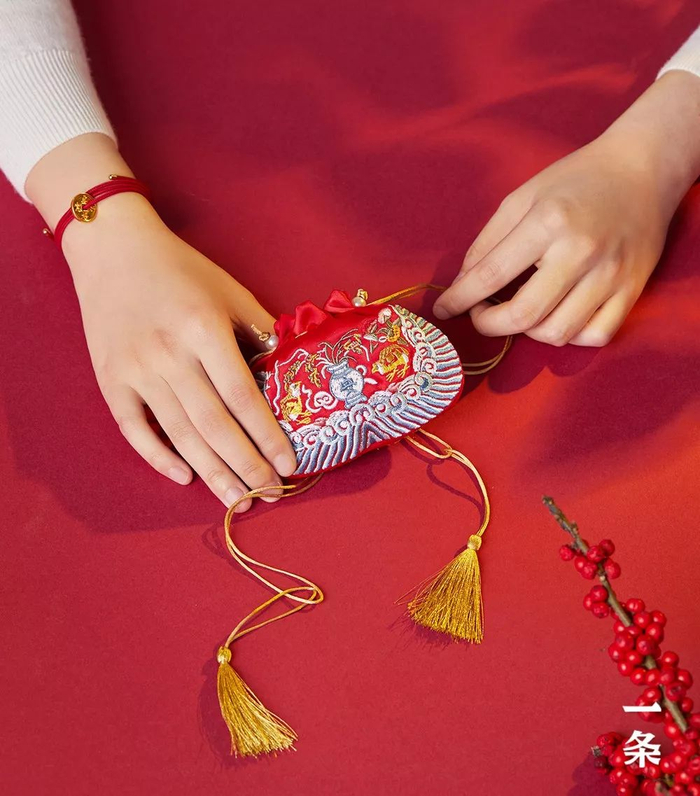 一个小小的精致荷包,美意横生、福气满满,讲究的就是个喜庆热闹。