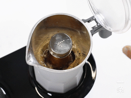 制作过程中,可打开咖啡壶壶盖进行观察,但请一定小心蒸汽,且不要触碰壶身。