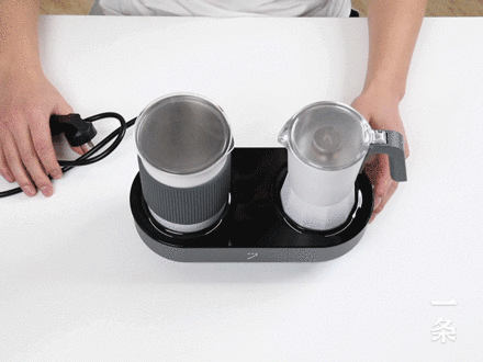 咖啡壶和奶泡壶,按照底座上的标识对号入座。