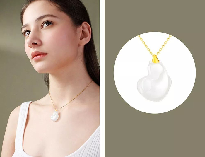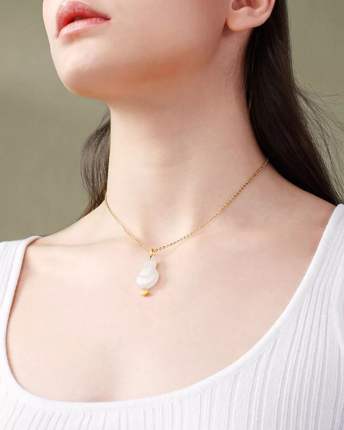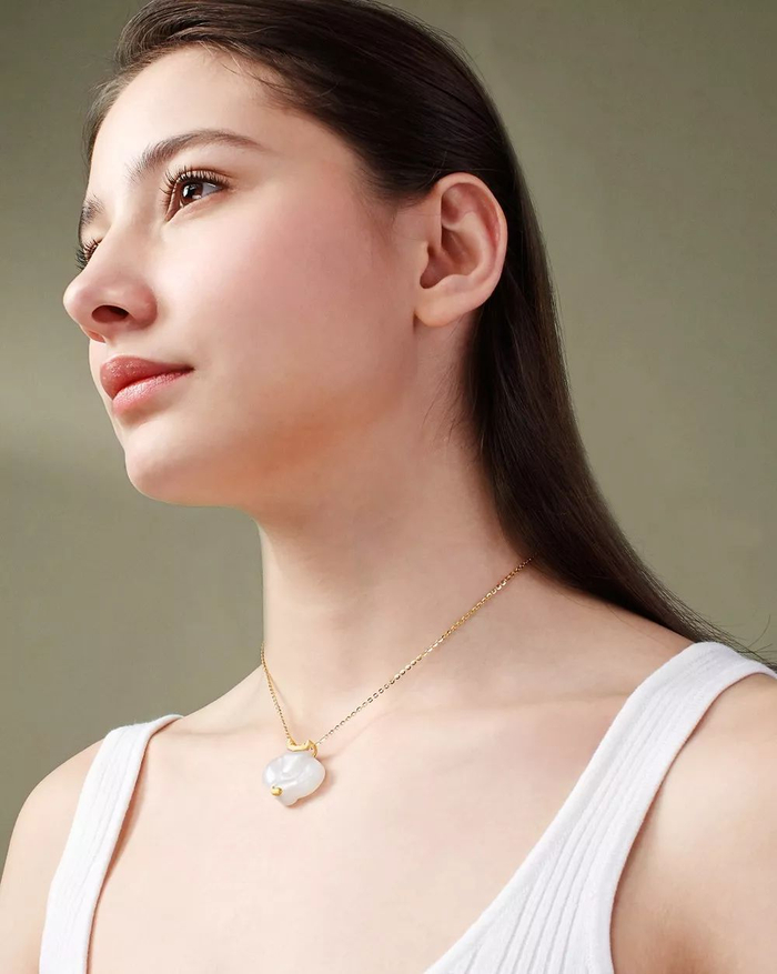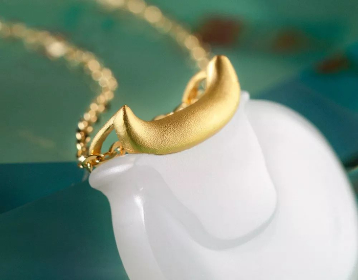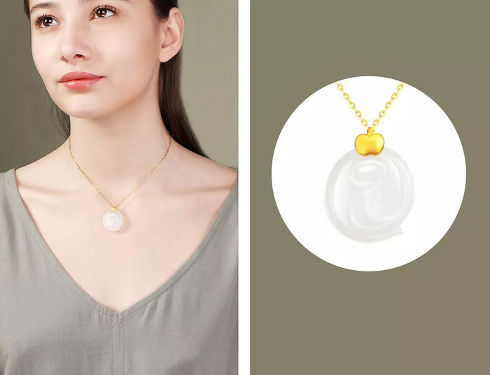 金配玉自古已有,代表着“金玉良缘”的美意,足金的设计让玉吊坠的寓意更为美好。