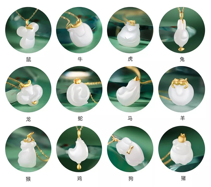 足金镶嵌和田玉,做成十二生肖吊坠,有趣又有福气 | 诺亚&一条生活馆