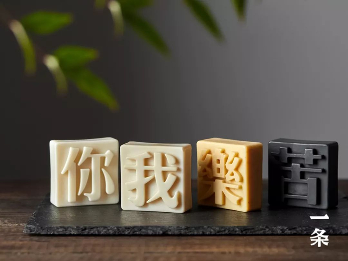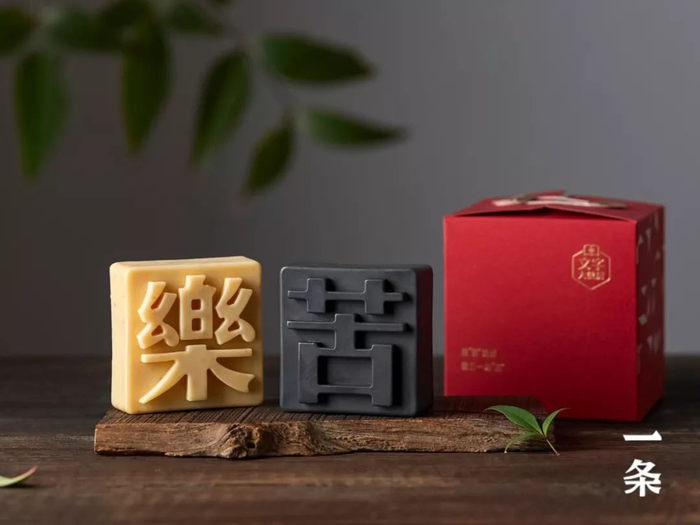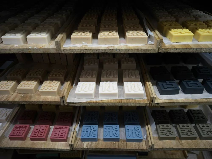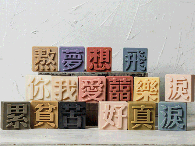 “文字肥皂”不是简单把字印上去就好,而是成分、香气、字义、颜色合一。