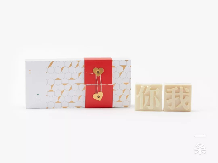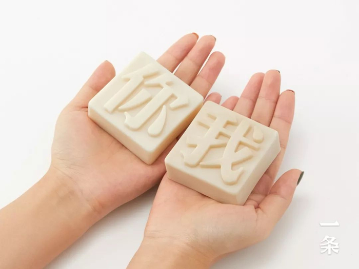 套装包含一你一我,共两块“文字肥皂”。