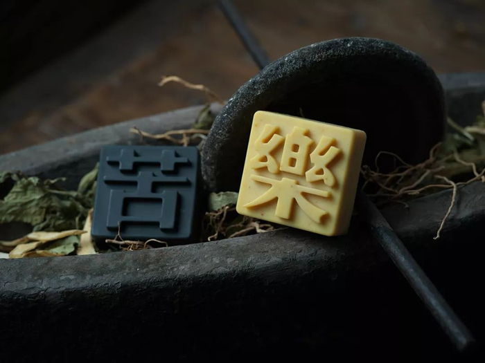 套装包含一苦一乐,共两块“文字肥皂”。