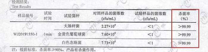 它含有75%的酒精,可以有效杀死细菌和病毒,而且使用了专利的抗菌技术,对于大肠杆菌、金黄色葡萄球菌、白色念珠菌的除菌率高达99.99%。