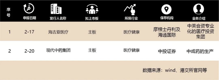 本周包括2家医疗健康行业企业提交IPO申请。
