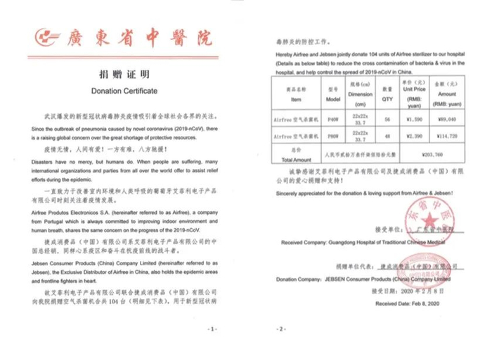甚至连医院都在用(图片为“AirFree”的捐赠证明)。
