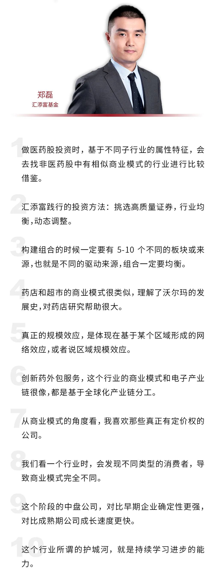 非常有意思,你是我们认识唯一会借鉴其他行业商业模式,来研究医药企业的基金经理。那么你怎么去进行投资呢?