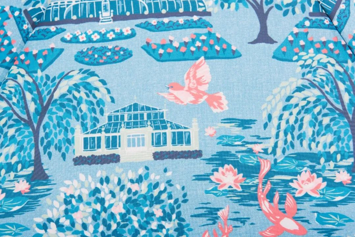 春天除了鲜艳的花儿,还有着蓝蓝的天空,这款图案描绘了晴空下植物园的美景。