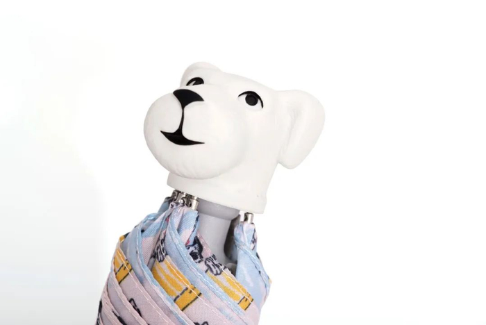 重点是,它的伞柄也超可爱,是一只憨萌的狗狗。
