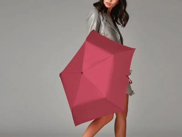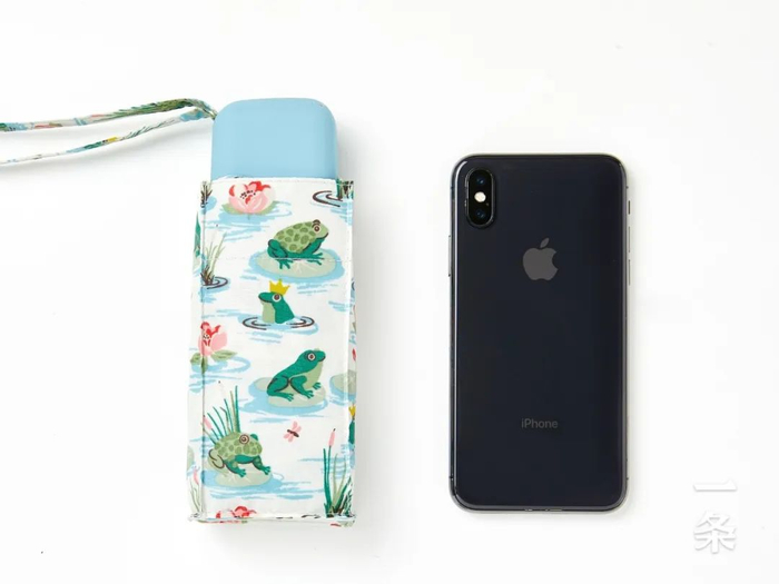 五折伞,收起来只有巴掌大,特别轻便,不用时可以轻松地塞包里。