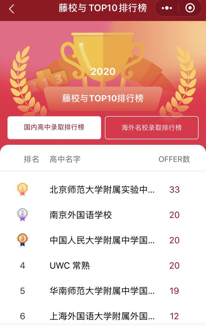 上海没有表现特别突出的学校,但综合实力不容小觑。上外附中、包玉刚、上海平和、上海星河湾学校,均超过10个offer在手。