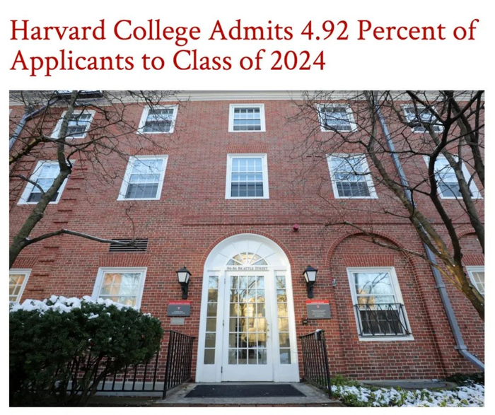 根据哈佛大学官网,今年学校共收到40,248申请,,申请人数比去年减少7%,录取1,980名学生,2024届录取率为4.92%。,相较于去年的4.50%略有上升。