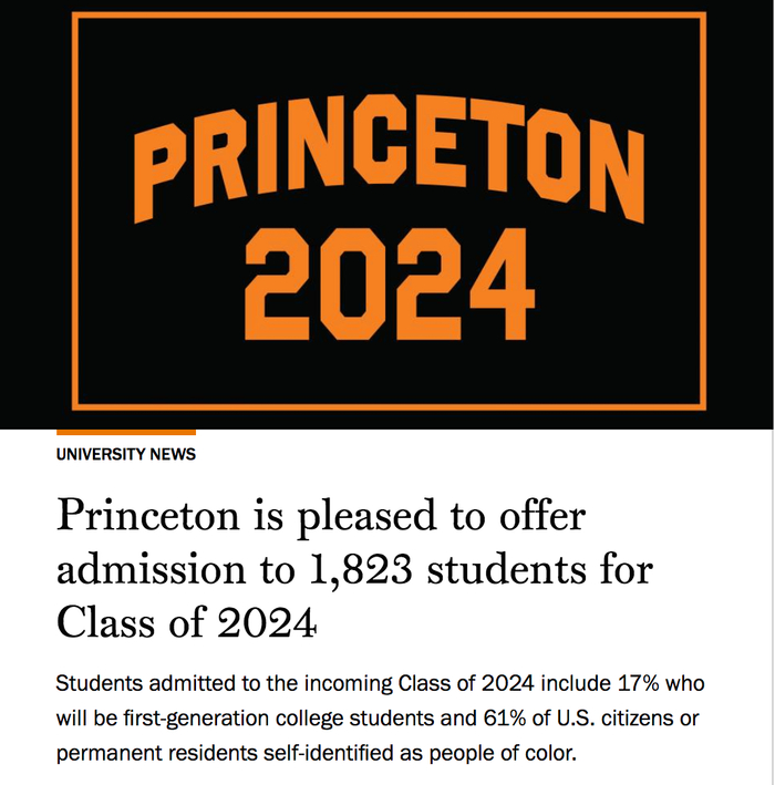 作为U.S.News排名第一的普林斯顿大学,在今年早申请和常规申请阶段共收到了32836份申请。录取1,823人,2024届录取率为5.55%,相比去年5.78%有所下滑。