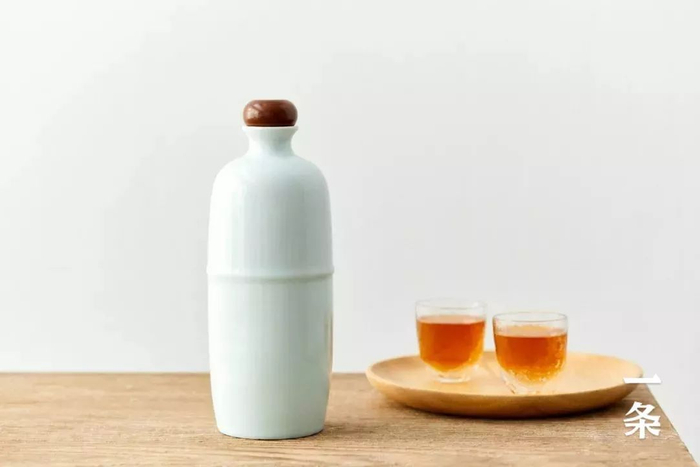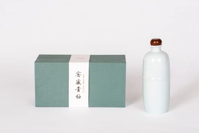 一样是用原汁原味的青梅发酵法,天青色瓷瓶盛酒,触手温润,极富美感。
