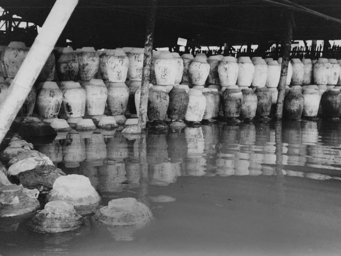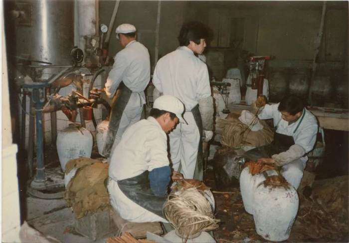 1983年,酒厂师傅们利用笋壳和黄泥,在为青梅酒封坛