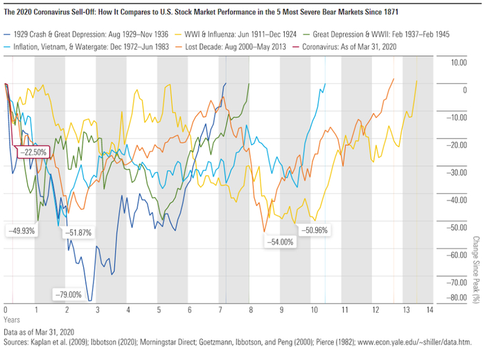 我在下文中分析了历史上的一些危机时刻来对比研究当前由冠状病毒引起的股市下跌。