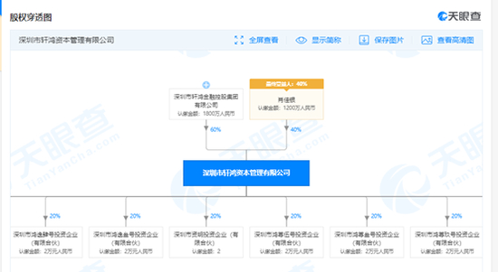 天眼查显示,轩鸿基金成立于2014年1月2日,深圳市轩鸿金融控股集团有限公司持股60%,轩鸿基金法定代表人肖建海持有轩鸿集团90%股权。轩鸿资本则成立于2013年,同样由轩鸿集团持股60%,此外,肖建海的亲属肖佳银持股40%。