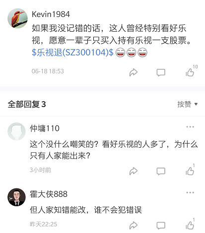 梁宏:三泰这只股,我个人做股票的时候做过;乐视的话,我个人做股票的时候做过,基金在第一年的时候也曾经持有,到后来出事我就清仓了,亏了五个点。