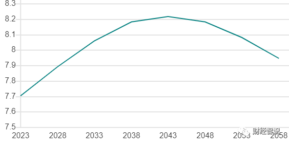 香港2023至2058年人口預測(单位:百万)