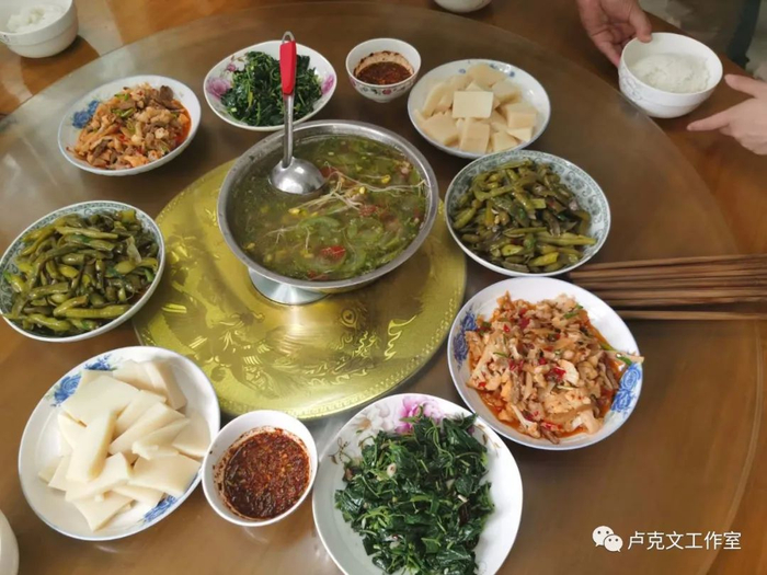 平时吃得很是一般,我在扶贫村和一线扶贫干部们吃了几餐,基本都是这个样子。