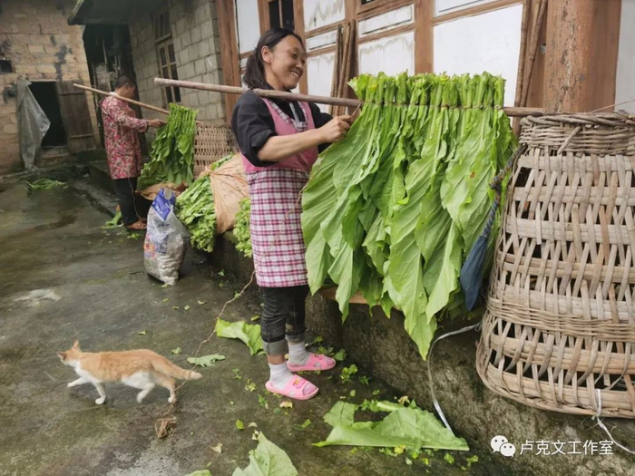 杉坪村村民在收拾烤烟,烤烟是经济作物里最辛苦的,比种辣椒、茶叶要辛苦得多