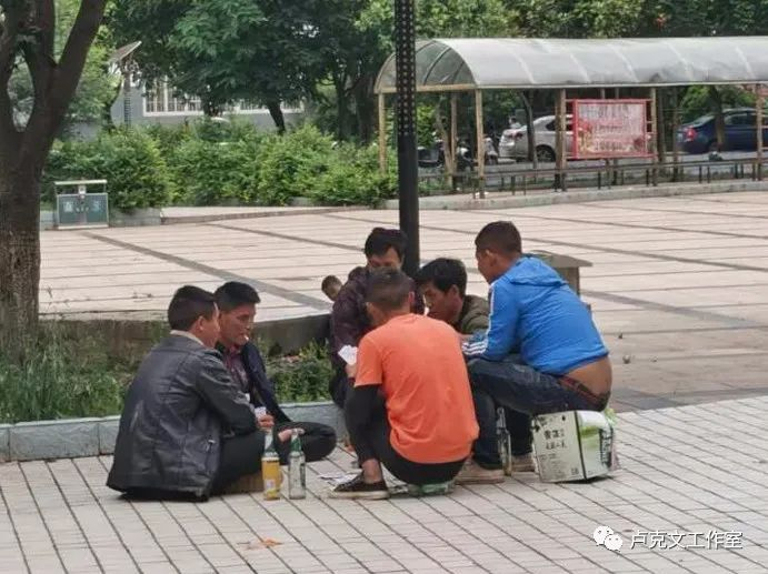 在布拖县城路边打牌的彝族青年,这一路看到很多这种现象
