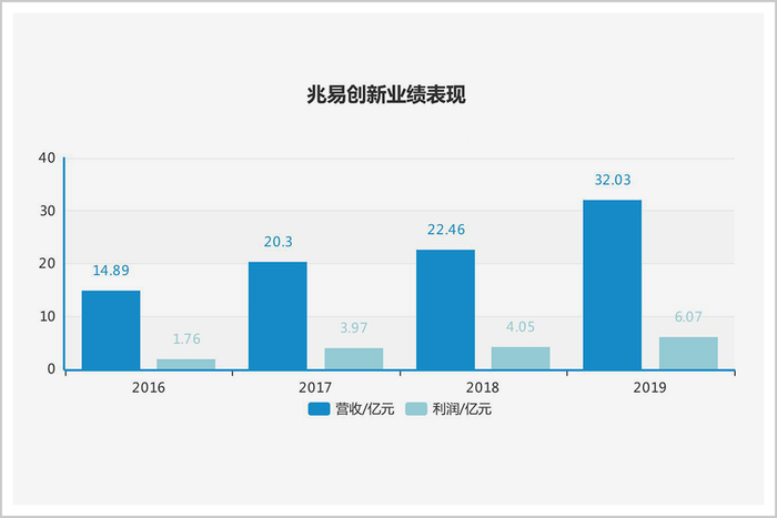 自2016年上市至今,兆易创新总共发布四份年报,四年营收分别为14.89亿、20.3亿、22.46亿和32.03亿,年复合增长率29%;归母净利润依次为1.76亿、3.97亿、4.05亿和6.07亿,年复合增长率51%。